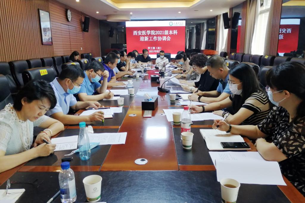 会上,学生处副处长昝倩宣读了《西安医学院2021年本科学生迎新工作安排的通知》,并就开学前的疫情防控演练工作进行了统一安排和部署。学工部副部长、校团委书记韩文霞就2021级本科新生入学教育及十四运志愿者工作进行了安排和说明。招生与就业工作处、信息技术处、财务处、教务处、保卫处、后勤保障处、校医院分别就我校2021级本科新生录取情况、线上报到情况、缴费情况、学籍管理、安全保卫、后勤保障、疫情防控等方面进行了汇报和充分沟通,统一了思想,确保迎新工作顺利完成。